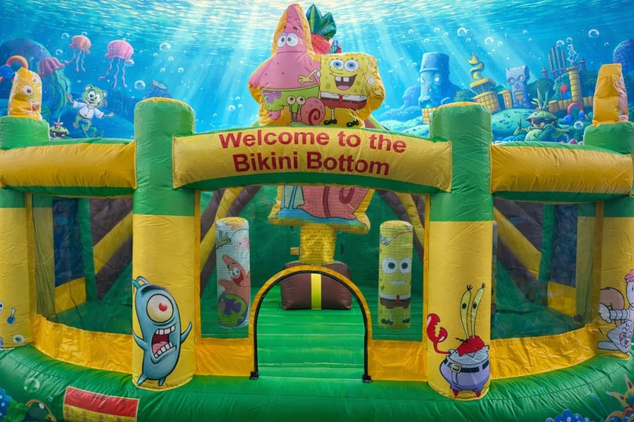 Get ready for the Bikini Bottom ultra realistic bounce house. This impressive bounce house features a climbing area, jumping arena, pop-up obstacles, and a slide. Enjoy all your favorite SpongeBob characters in one inflatable.